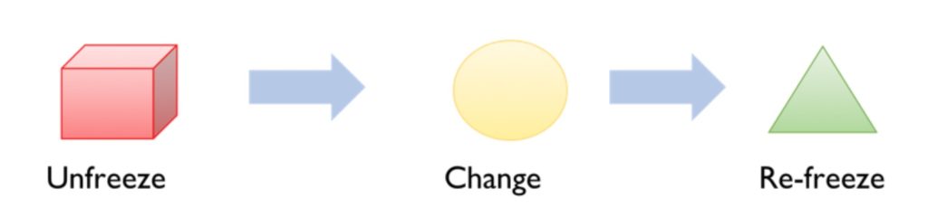It starts with the need for us to firstly unfreeze, to open up to the possibility that there are better ways of doing something. It sounds so simple and yet we often try and skip this step, and fail with change as a result. We each need to have the reason for the change explained carefully to us, in a way that is compelling and urgent: